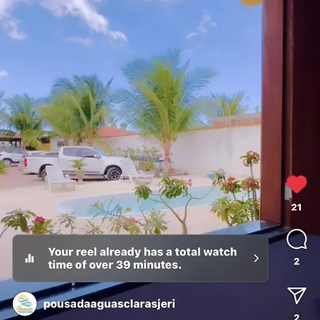 El hotel Pousada Águas Claras Jijoca de Jericoacoara dispone de una terraza-solárium con una piscina, y se encuentra a una distancia de 2 km del Árbol de la Pereza.